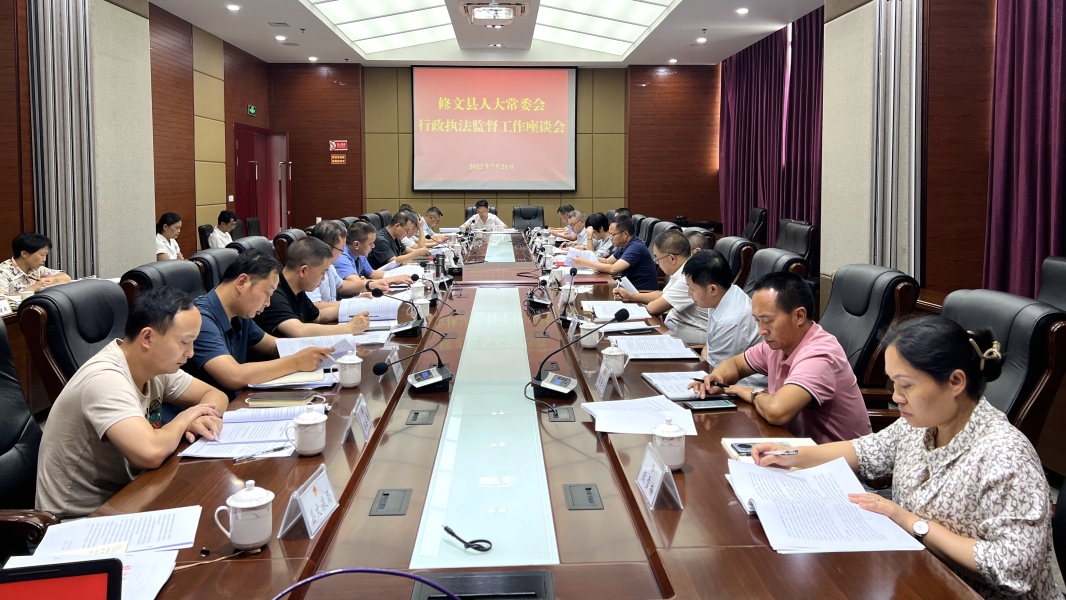 7月21日,修文县人大常委会召开行政执法监督工作座谈会。县人大常委会主任王世利,县人大常委会副主任胡祥碧、林江、李红雨、项江,县人民政府副县长、县公安局局长舒毅,县人大各专(工)委及县各相关单位部门负责人参加会议。